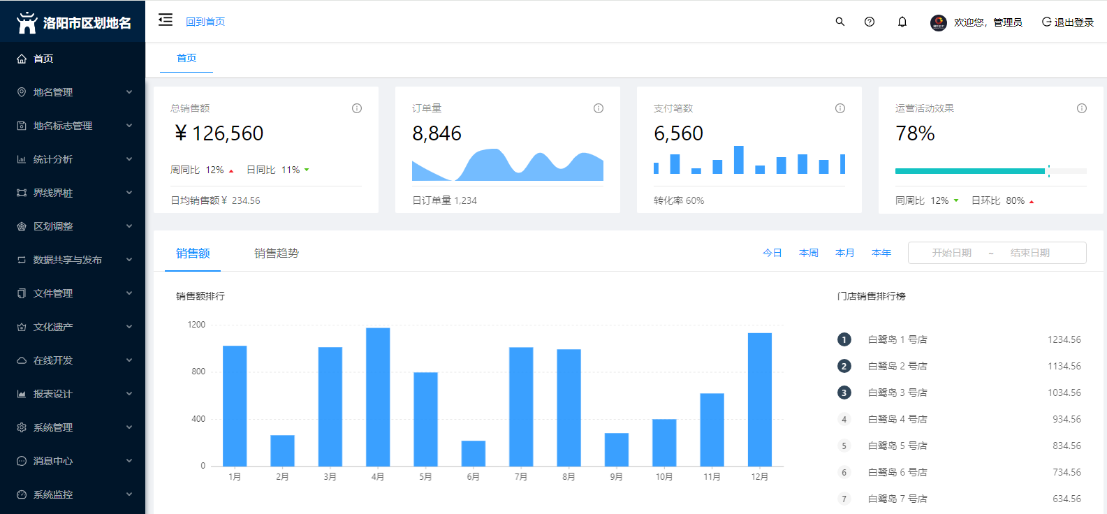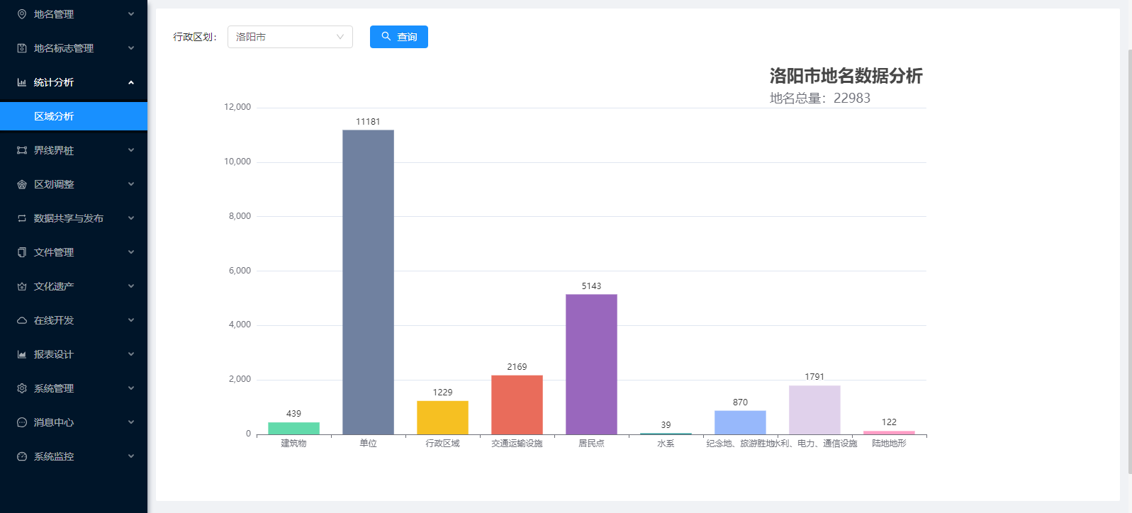 地名信息管理:地名管理、地名標志管理、統計分析